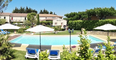 L'Hôtel Le Pradet *** Vacqueyras en Provence vous accueille dans un espace lumineux et spacieux au cadre paisible offrant pour certaines chambres une vue sur la piscine, le jardin et les Dentelles de Montmirail.